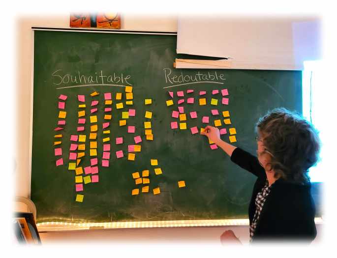 Cette étape vise à définir les jalons qui sont des étapes intermédiaires qui doivent être franchies pour lier le présent au futur souhaité. Nous devrons ensuite identifier les liens entre ces jalons, c’est‑à‑dire quels jalons sont des prérequis à d’autres ?