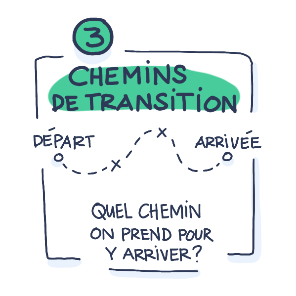 Dans cette démarche en 5 étapes, nous en sommes rendus à l’étape 3, celle des chemins de transition pour le territoire. Il s’agit d’identifier les jalons les plus pertinents, afin d’atteindre la vision citoyenne issue de l’étape 2. Des comités d’experts et de représentants du milieu auront le mandat d’établir des trajectoires décrivant les grandes étapes et les actions clés qui permettent de réaliser la vision collective.