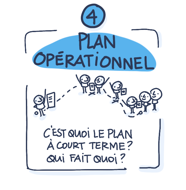 Le plan opérationnel est mis en œuvre : les membres de la Collectivité ZéN exécutent les différentes actions identifiées pour atteindre la vision et mobilisent le réseau local pour soutenir la réalisation des actions.