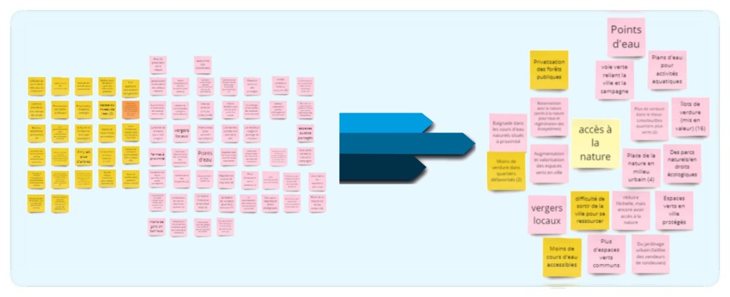 Les ateliers ont été conçus selon l’approche du codesign prospectif. Cette approche invite les participant·es à se plonger dans l’avenir à l’aide de scénarios contrastés, qui sont des outils pour imaginer différents mondes possibles dans le futur. Formulés sous la forme de petites histoires incarnées par des personnages, ces scénarios déclencheurs, élaborés selon des tendances scientifiquement plausibles, ont suscité de passionnants échanges. Les participant·es ont pu partager leurs rêves, inquiétudes et idées pour faire face aux grands dilemmes que pose une transition vers un avenir viable sur les plans écologique et humain.